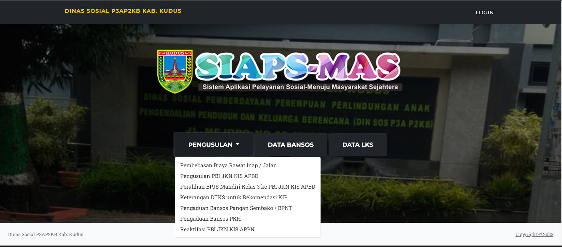 Creating a web-based application for the DINSOS P3AP2KB Kudus Regency service and then assisting the administration and services of the DINSOS P3AP2KB Kudus Regency.